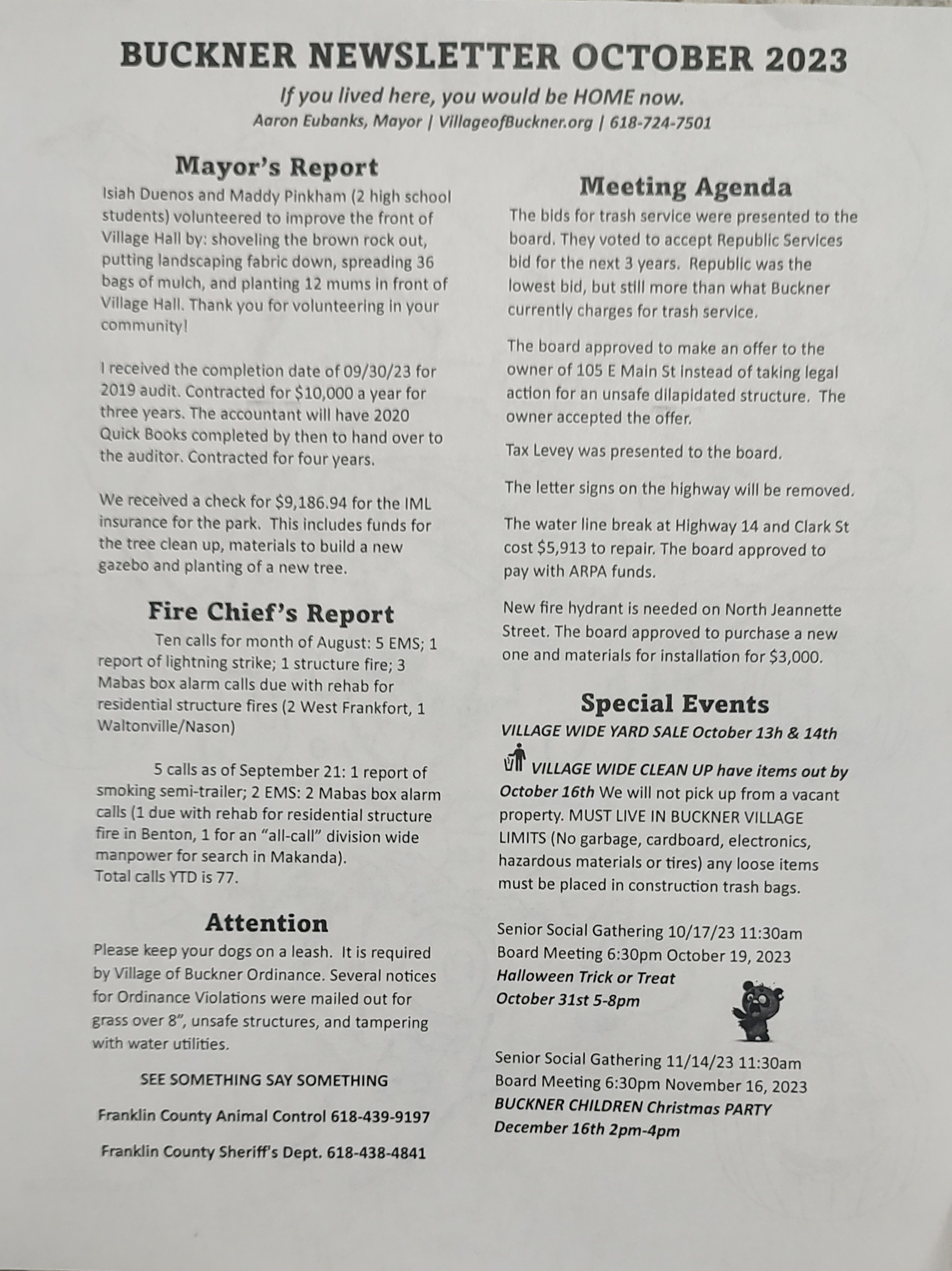 Buckner Illinois Newsletter